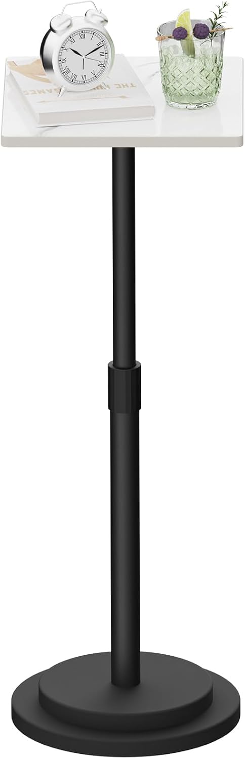 Versatile End Table with Metal Base, Height Adjustable, Vintage Square Indoor Metal Plant Stand, for Sofa, Bedside Small Couch, Living Room and Bedroom, 1 Pack, White, GBZ001SW-1