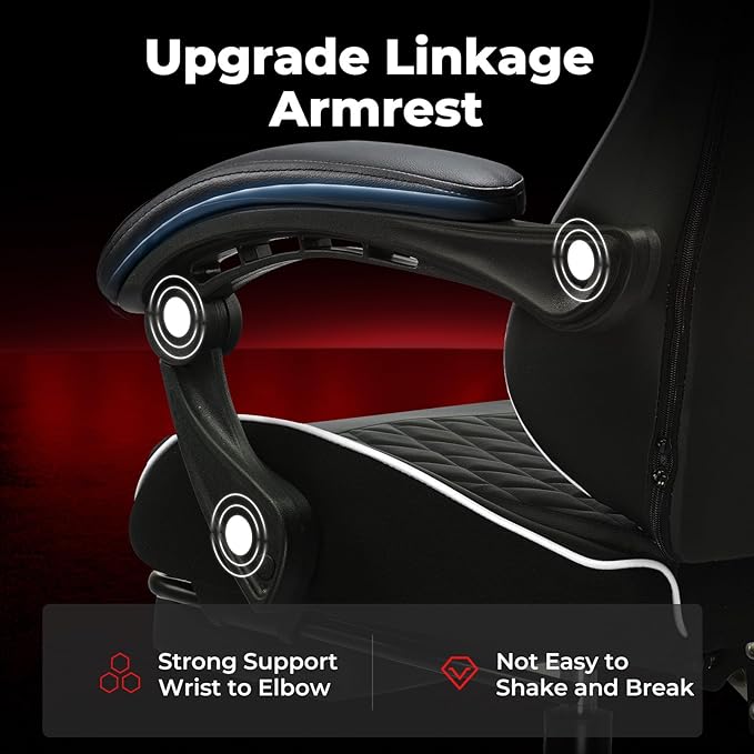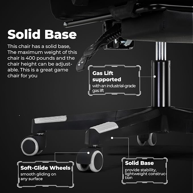 - High-Quality Materials: This high-back computer chair is well-crafted, we use high-quality PU leather material and embroidery to make the chair both functional and aesthetically pleasing. The chair has a weight capacity of 396 pounds, and its stable and sturdy material structure can provide support for gamers of all sizes. In addition, the upgraded support gas rod also extends the chair’s life expectancy .