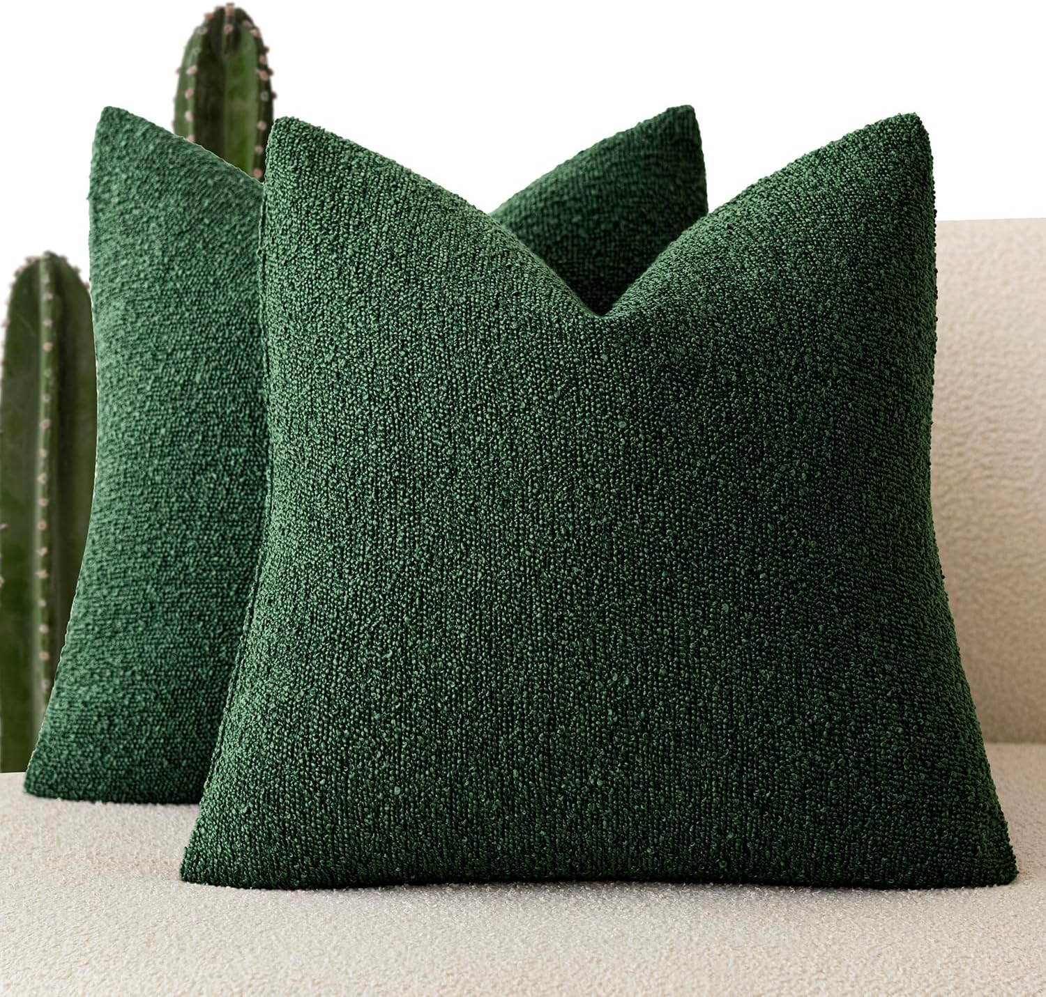 Foindtower Pack of 2 Textured Boucle Throw Pillow Covers Neutral Accent Solid Decorative Pillow Cases Cozy Woven Couch Cushion Case for Sofa Bedroom Living Room Home Decor 20x20 Inch Pine Green