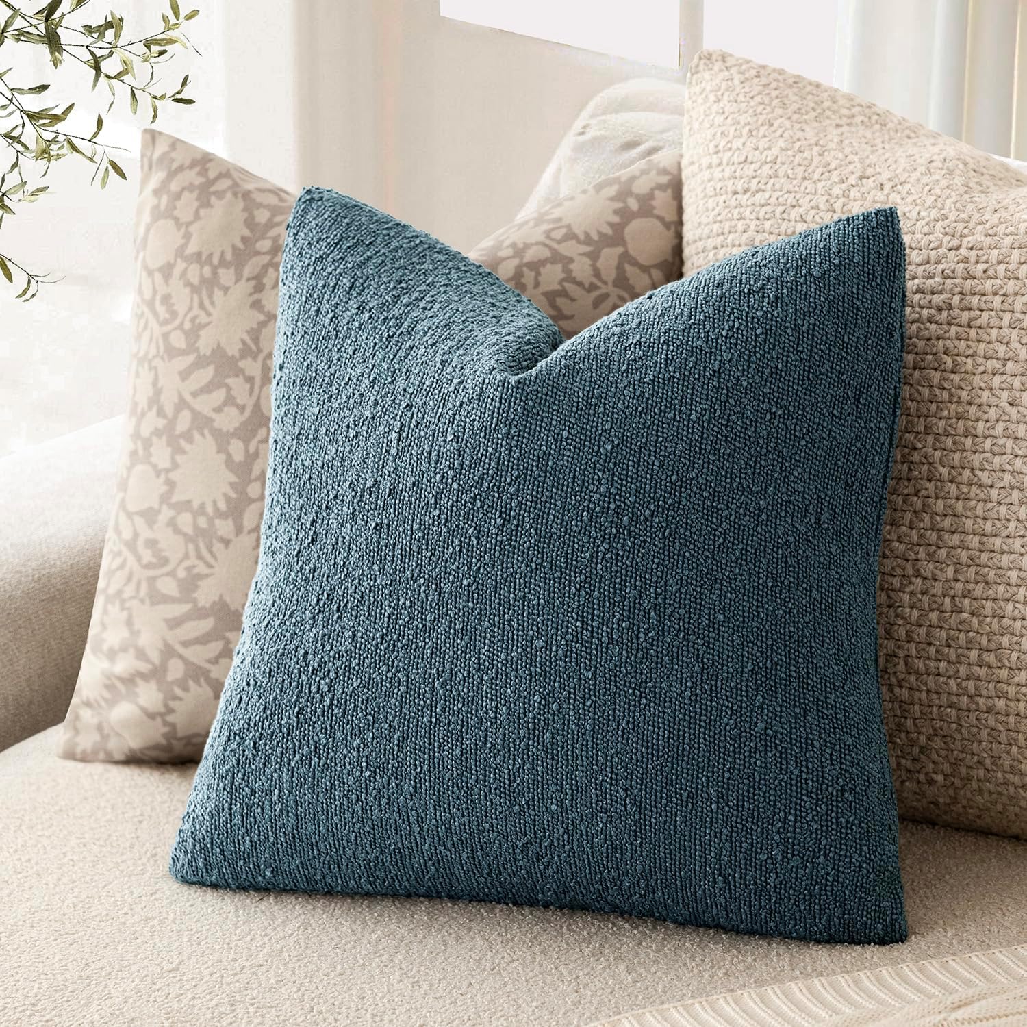 Foindtower Pack of 2, Decorative Textured Boucle Throw Pillow Covers Accent Solid Pillow Cases Cozy Soft Couch Cushion Case for Chair Sofa Bedroom Living Room Home Decor 22x22 Inch Misty Blue