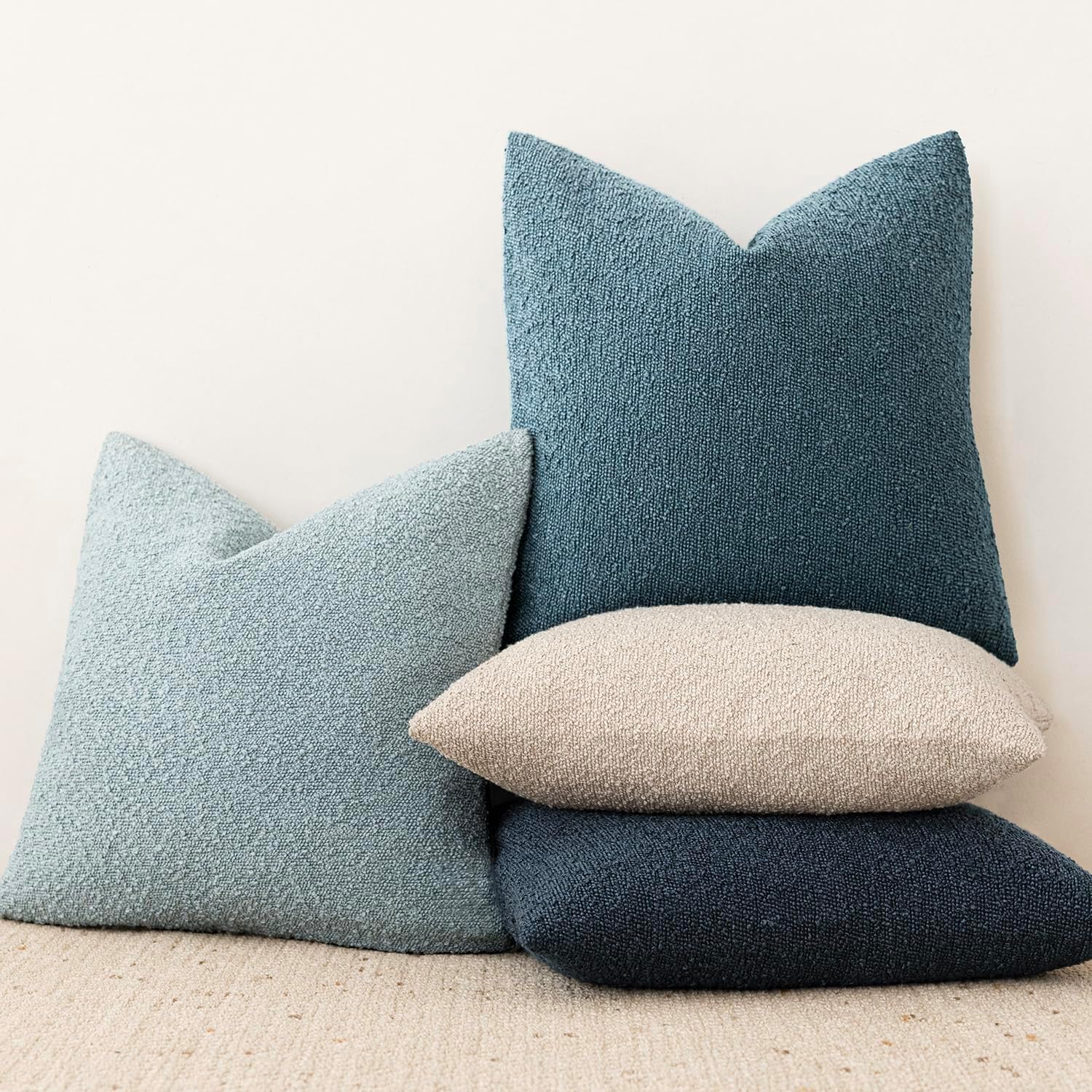 Foindtower Pack of 2 Textured Boucle Throw Pillow Covers Accent Solid Pillow Cases Cozy Soft Decorative Couch Cushion Case for Chair Sofa Bedroom Living Room Home Decor 18x18 Inch Misty Blue