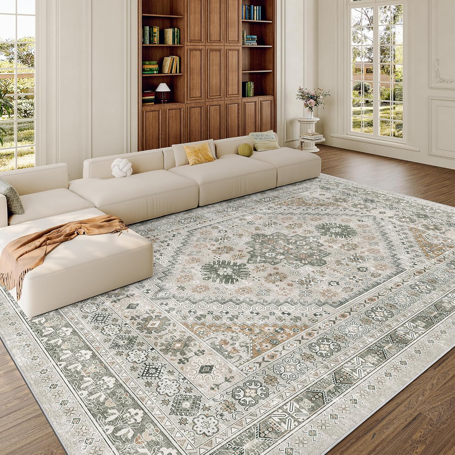 zesthome 8x10 Area Rugs for Living Room,Non-Slip Backing Washable Rugs,Vintage Large Area Rug,Stain Resistant Home Decor Rug (Brown/Grey,8'x10')