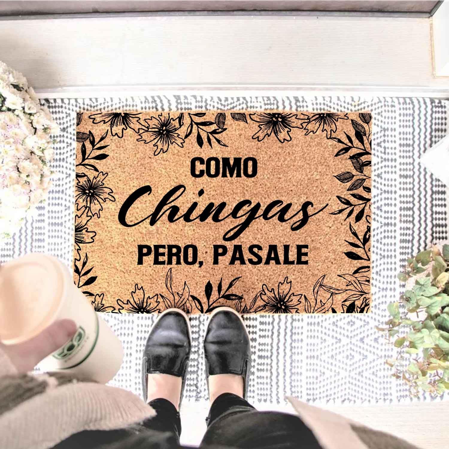 Funny Coir Doormat with Como Chingas Pero Pasale Spanish Quote - Front Door Mat, Entryway Welcome Mat, 23.7 x 15.7 inch