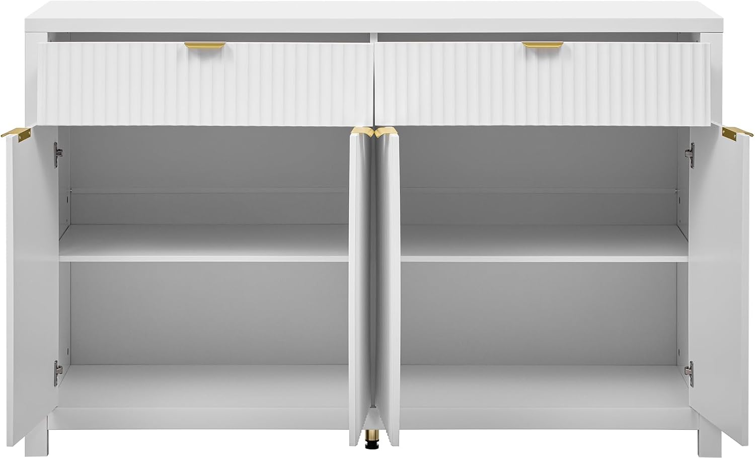 Merax Modern Wave-Pattern Sideboard Cabinet with 2 Drawers and 4 Doors,Buffet Cabinet,Aluminum Arc Handles,Scandinavian Style,Suitable for Entryway, Living Room,Foyer,White