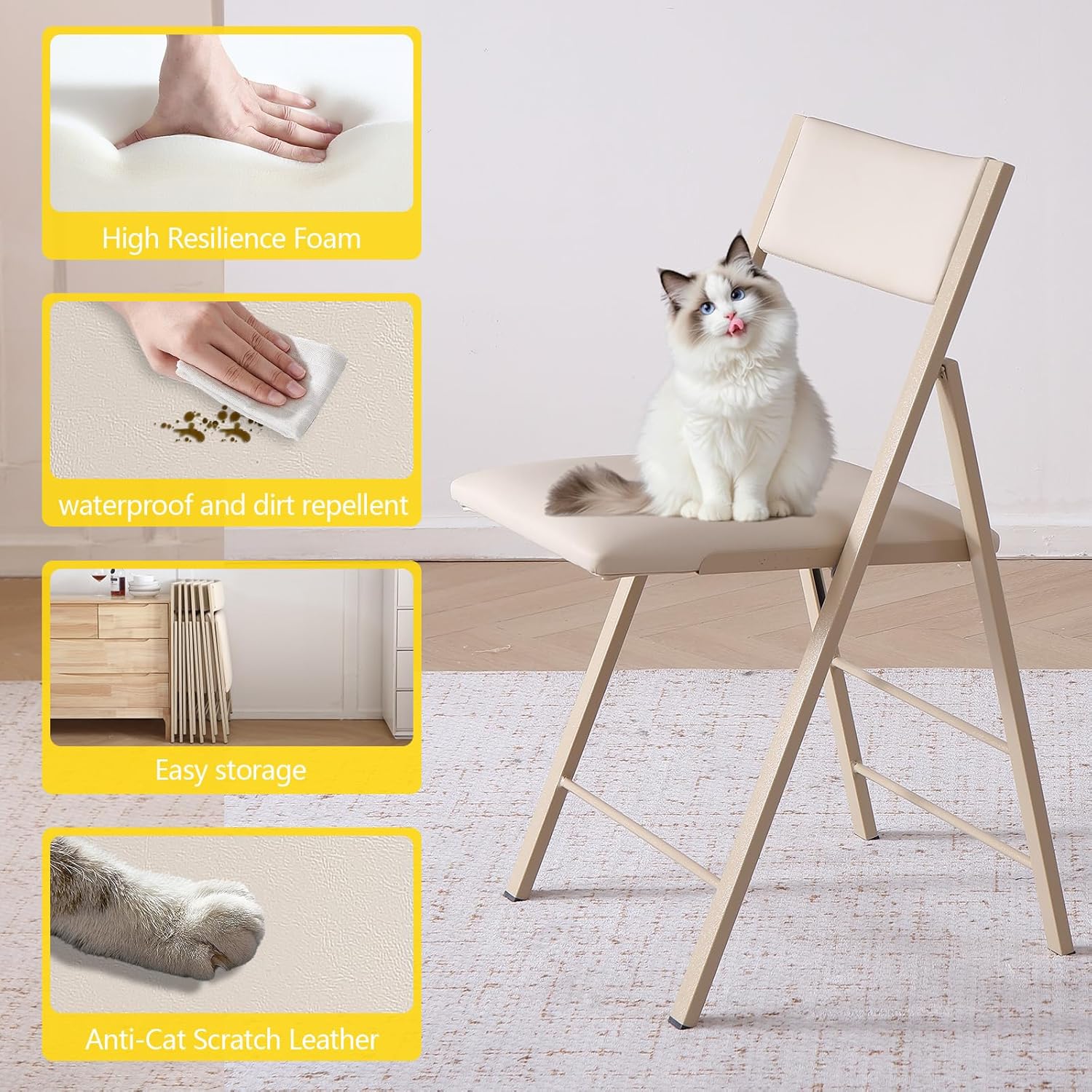 - 【Cloud Padded Seat - 8+ Hour Comfort】 Thicker than typical metal folding chairs, our metal folding chairs with cushion use high-resilience comfortable sponge + waterproof leather. Ergonomic curve fits dining tables perfectly, reducing hip fatigue during extended meals – why choose hard stackable folding chairs when comfort matters.