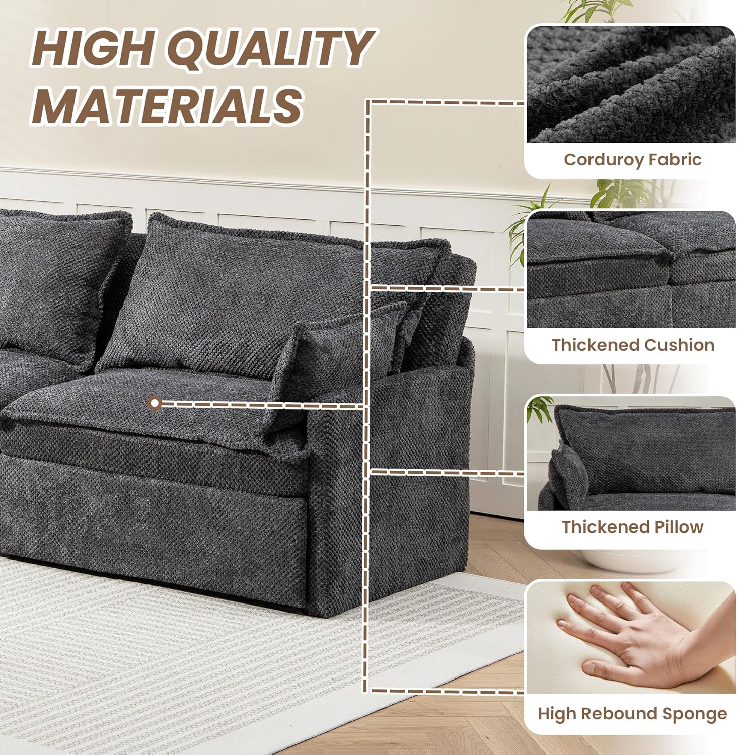 - COMBINING COMFORT & DURABILITY: Sink into plush comfort with our skin-friendly corduroy-blend upholstery and high-density foam cushions that provide cloud-like softness while maintaining perfect support. The reinforced steel frame with thickened legs and cross-bracing supports up to 800 lbs, ensuring years of stable use whether as a sofa or sleeping bed.