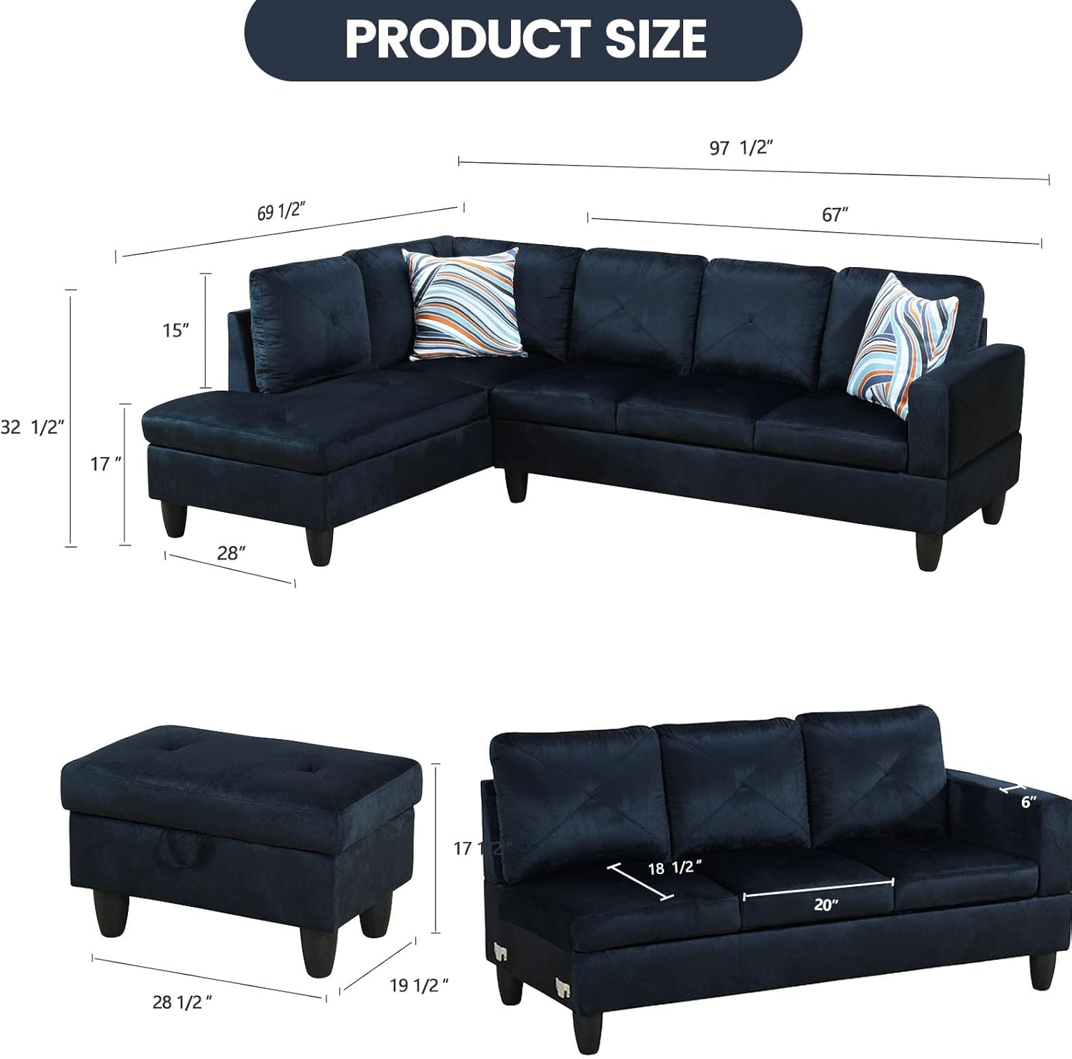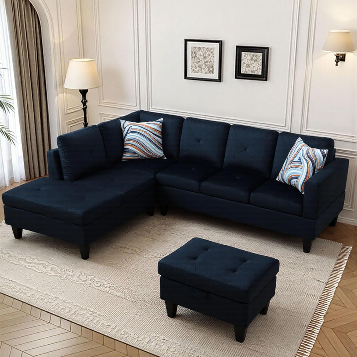 - Seating Capacity: An L-shaped sectional + ottoman comfortably seats 4-5+ people depending on the specific configuration.