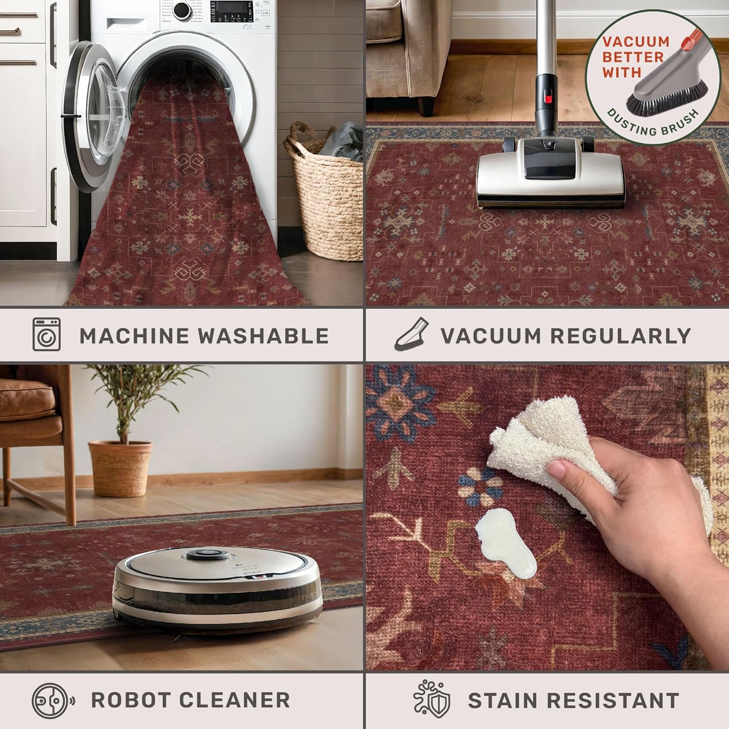 6x8 Dining Room Rugs for Under Table - Vintage Burgundy Boho Living Room Rug, Machine Washable Foldable Carpet,Southwestern Bed Room Décor Aesthetic