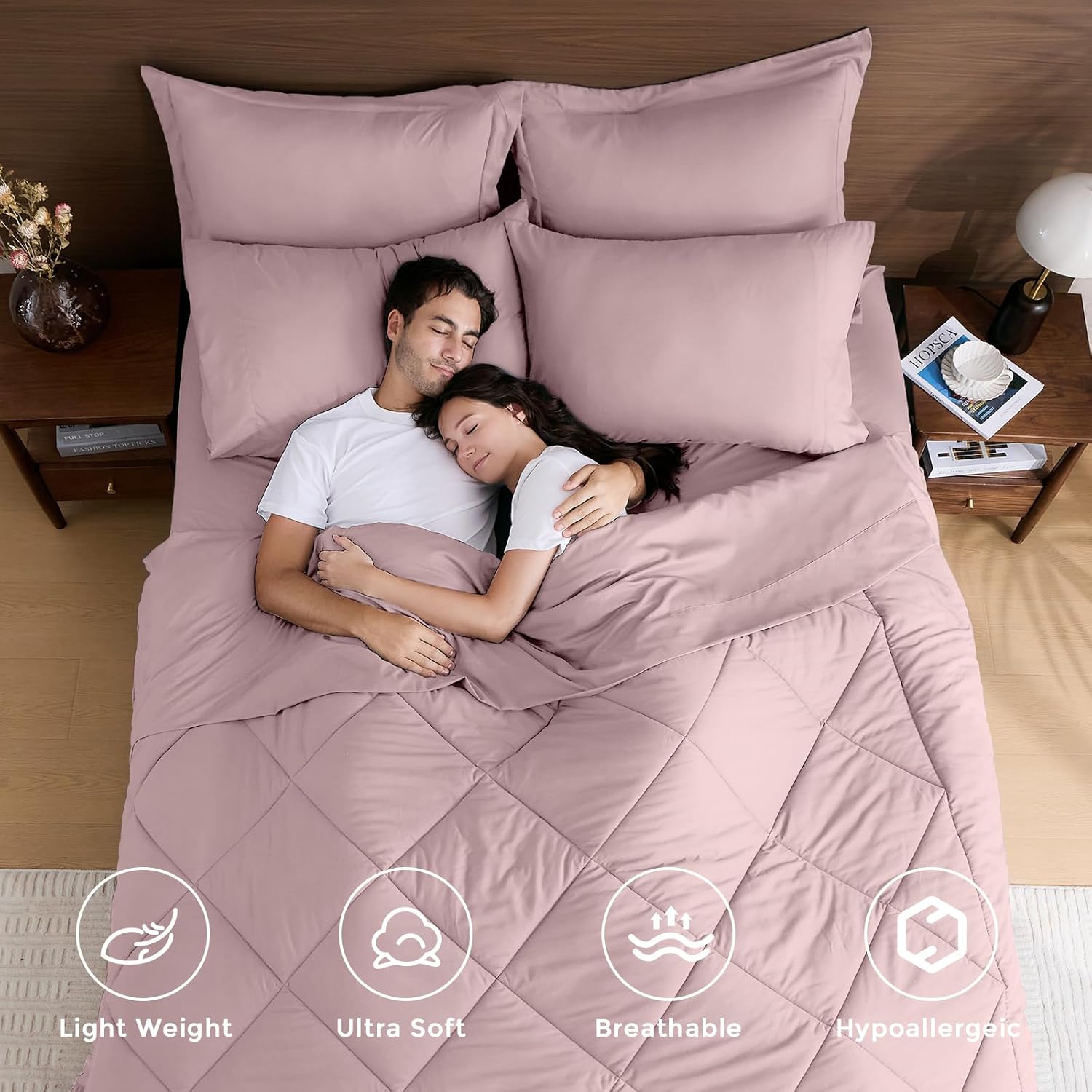 HEVUMYI Rose Gold Cali-King Comforter Set - 7-Piece All Season Bed in a Bag Cali-King, Ultra Soft Bedding Set with Comforter, Flat Sheet, Fitted Sheet, Pillowcases, Pillow Shams