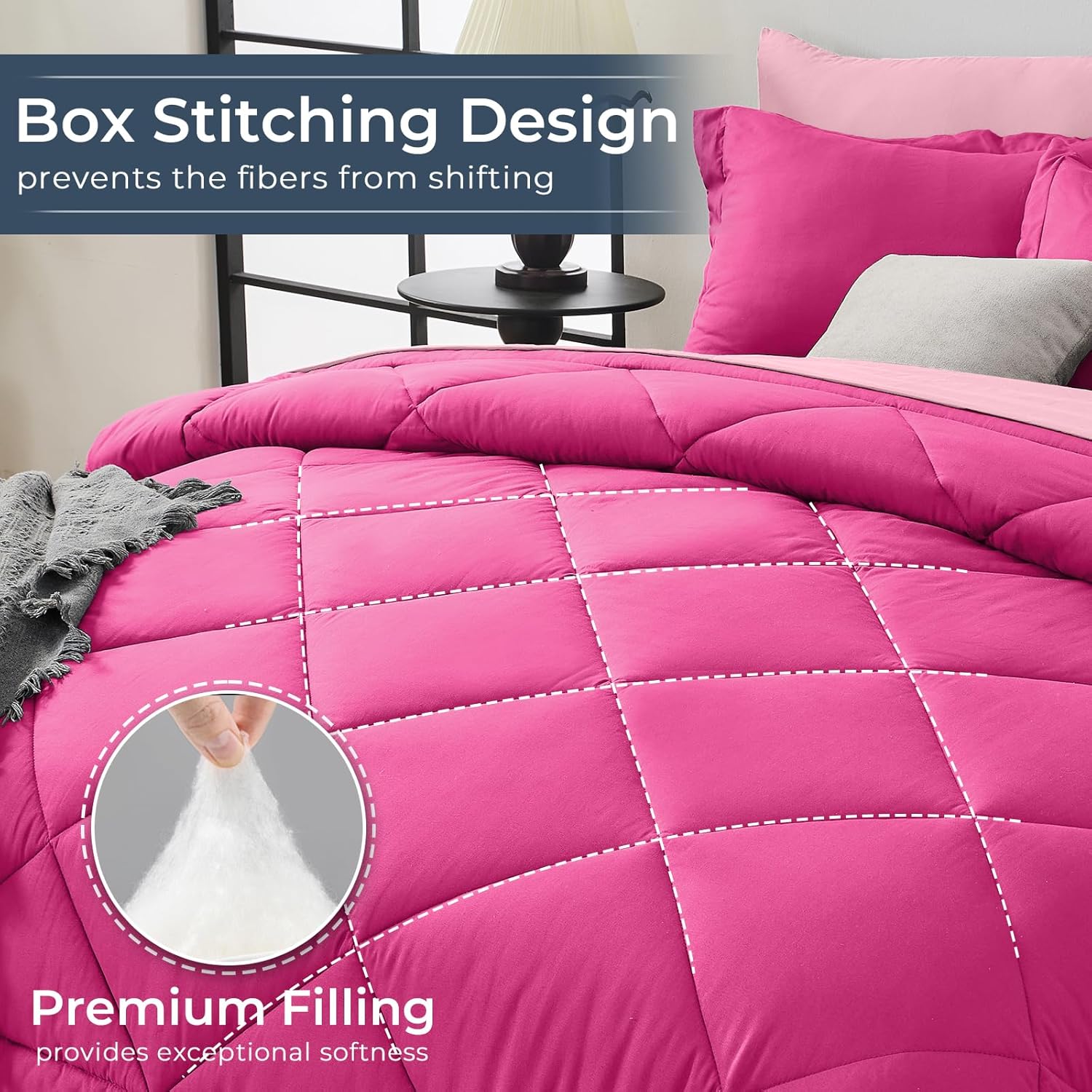 HEVUMYI Hot Pink & Baby Pink Full Comforter Set - 7-Piece All Season Bed in a Bag Full, Ultra Soft Bedding Set with Comforter, Flat Sheet, Fitted Sheet, Pillowcases, Pillow Shams