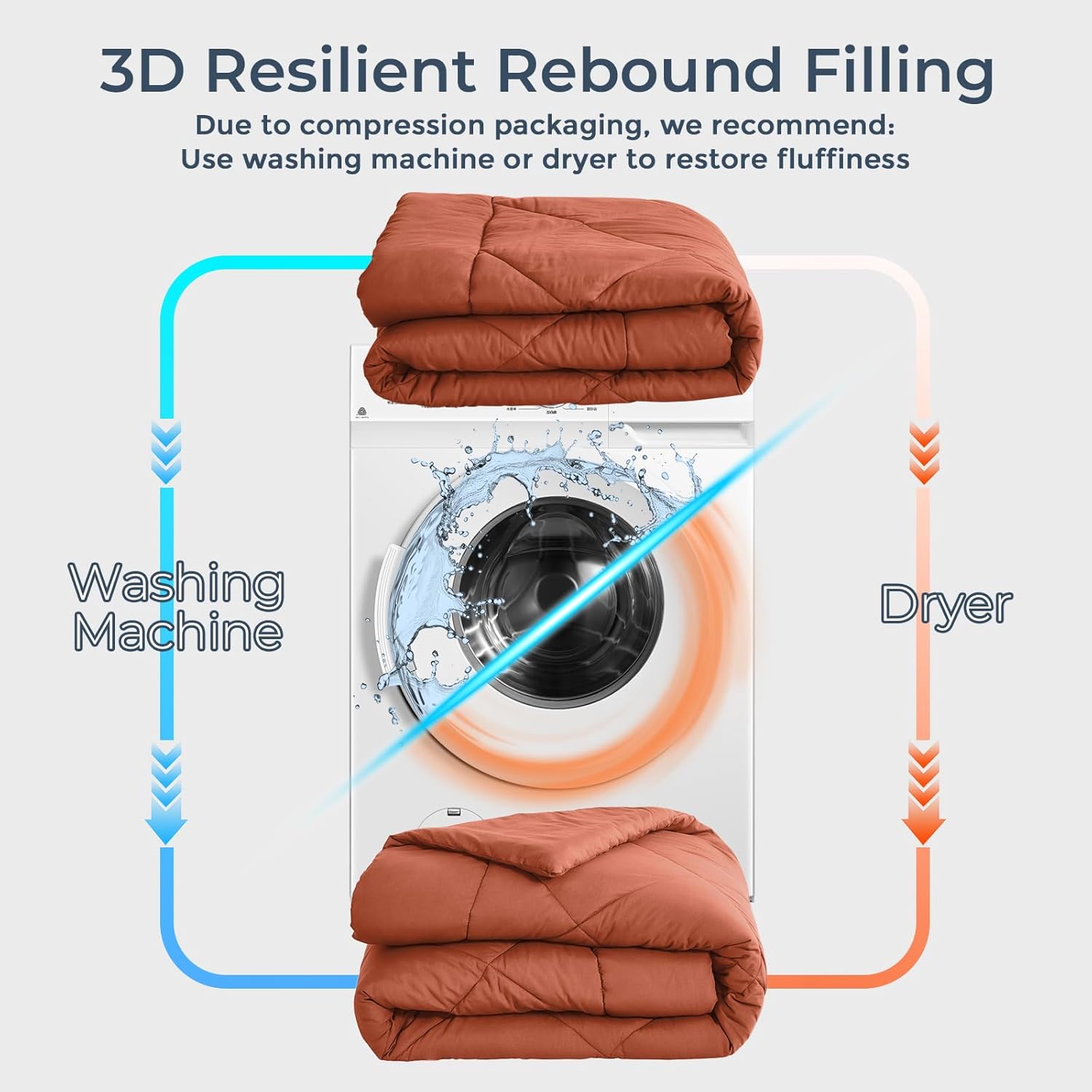- Easy Care Tips: All comforter sets are transported in exclusive cartons. Please machine wash in a gentle cycle with mild detergent, use dryer balls in the dryer to help distribute filling evenly. Remember to use a cool iron to help remove wrinkles