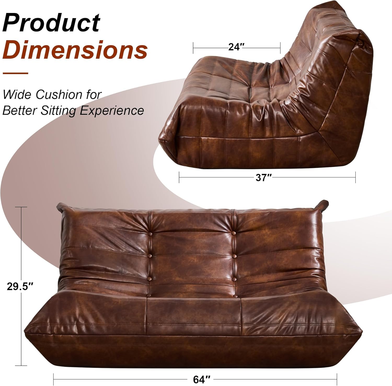 Hobestluk Bean Bag Chair Giant Bean Bag Sofa 2 Seater Bean Bag Chairs for Adults, Loveseat Floor Chair, Leather Bean Bag Chairs for Living Room Bedroom Dorm (Brown, Loveseat)
