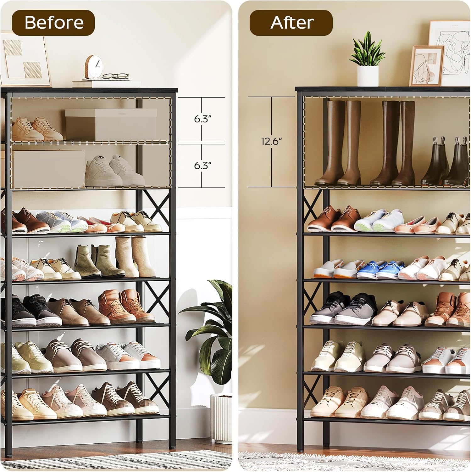 - Versatile Uses: Besides its original role of storing shoes, this shoe rack can be a display stand of books, greenery, flowers and artistic works in the living room, bedroom, office etc. powerful, practical and all-match
