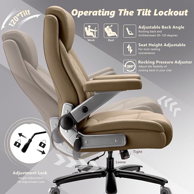 - 👉【Space-Efficient 5D Armrests with Optimized Utilization】:Need a stylish large home office chair for your work-from-home or shared office setup? No problem! The big and tall office chair with its ergonomic 5D flip arm design minimizes spatial requirements. The arm rests can be mounted on the back and then you can push them back for no arm rest which is very comfortable and handy. Prepare to swivel and roll your way to productivity paradise! This large desk chair doesn't just sit there looking pretty. It's a multitasking marvel