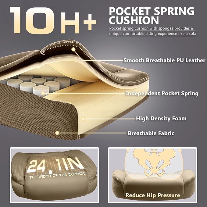 - 👉【Extra Wide Breathable PU Leather Large Office Chair】:Our executive office chair is equipped with a spring cushion to reduce hip pressure. The extra-wide chair backrest and independent lumbar support gently wraps your body and supports your lower back, thoughtfully designed to keep you comfortable during long hours of working, studying or gaming.