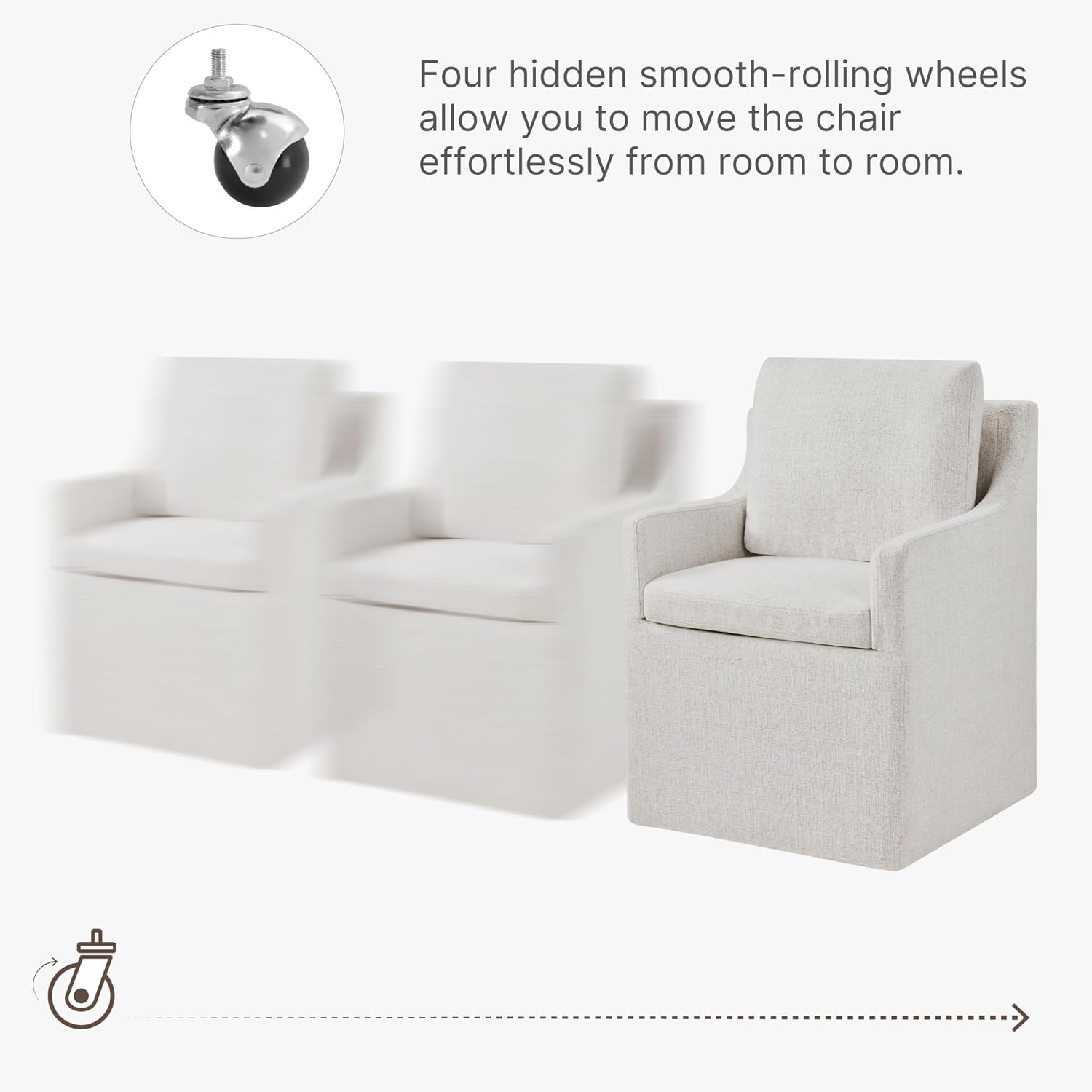 Upholstered Dining Chairs with Casters Easy Assembly Modern Accent Armchair with Rollers for Diningroom Bedroom Livingroom Reading Room,Linen,2 Boxs