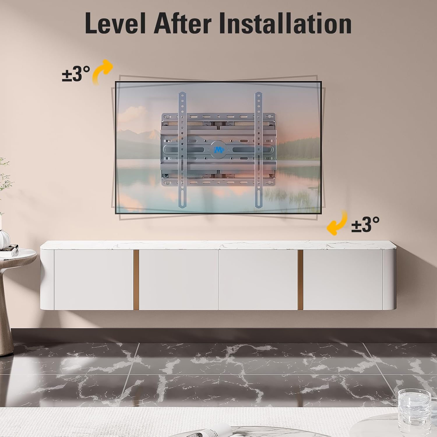 - Easy Installation: TV wall mounts with clear instruction and hardware in pre-labeled bags. +/-3° post-installation adjustment allows TV leveling after installation. The paper template makes the installation of TV mounting bracket easier. Considerate Design for Allen Key Storage