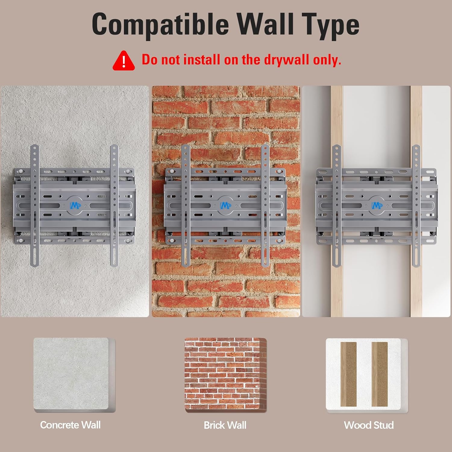 - US-based Customer Support: We are glad to answer your pre-purchase and installation questions about TV mounts. Mounting Dream TV wall mounts are NOT FOR DRYWALL INSTALLATION. (Concrete Anchors available on request. Anchors Specifications:φ10x50mm)
