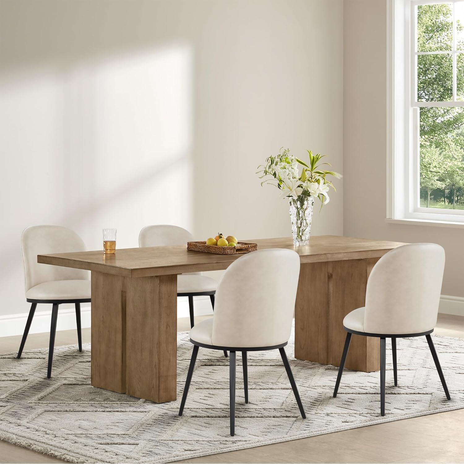 - 【LUXURIOUS FAUX LEATHER COMFORT】Designed for both style and relaxation, these upholstered dining chairs feature premium faux leather that's soft to the touch yet durable. The thick cushioning provides all-day comfort, making these modern dining chairs perfect for everything from quick breakfasts to lengthy dinner parties in your dining room.