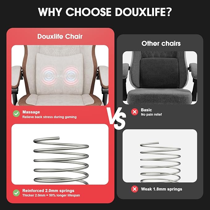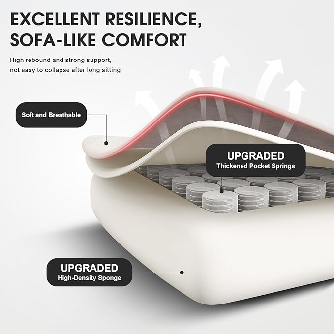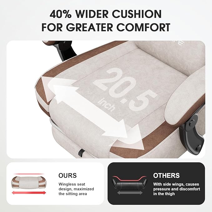 - [Sofa-Like Comfort] This gaming chair features 2.0 mm thick independent springs that increase elasticity by 45%, along with a sofa-soft cotton cushion made of breathable tech fabric for long-lasting sitting comfort. The anti-slip design optimally conforms to hip shape.