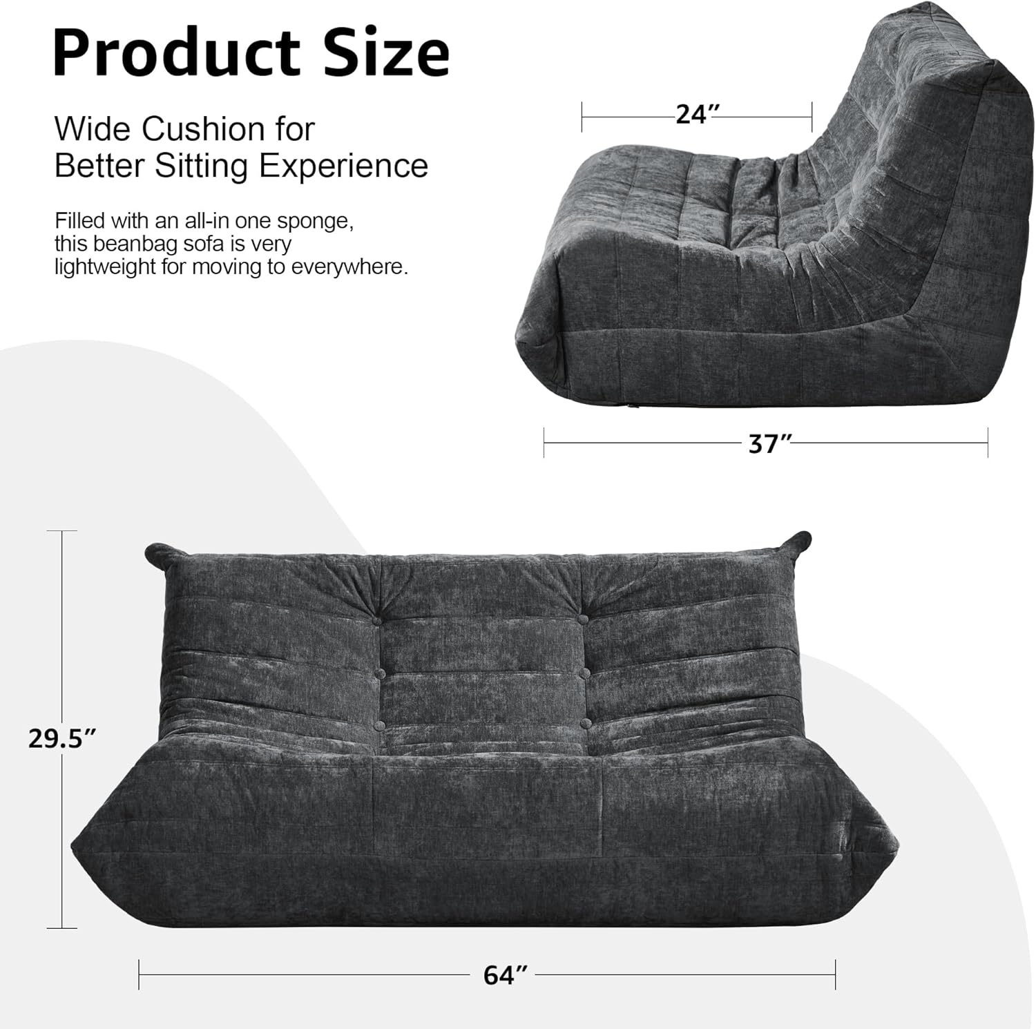 Hobestluk Bean Bag Chair Giant Bean Bag Sofa 2 Seater Bean Bag Chairs for Adults, Loveseat Floor Chair, Bean Bag Chairs for Living Room Bedroom Dorm Office (Darkgrey Chenille, Loveseat)