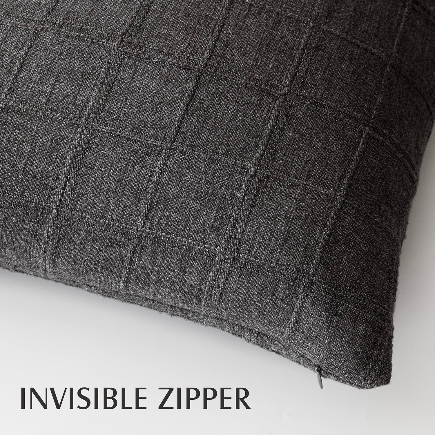 Foindtower Set of 2 Decorative Linen Check Throw Pillow Covers Neutral Farmhouse Vintage Cushion Covers Modern Boho Home Decor for Sofa Chair Couch Bedroom Living Room Outdoor,26×26 Inch,Charcoal