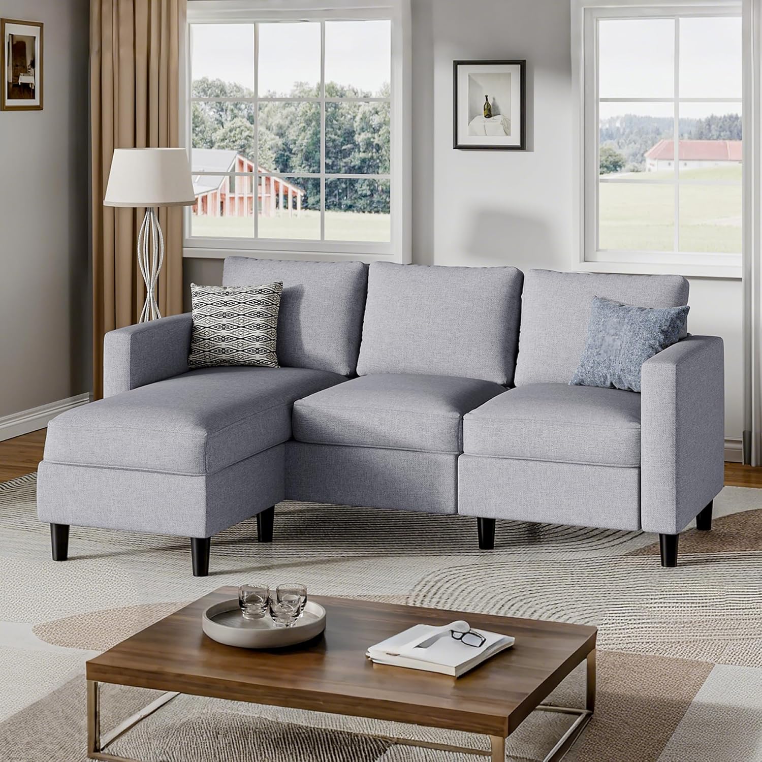 - Comfortable Sectional Sofa: The sofa is made of modern linen fabric with a hardwood frame as the basic structure. The linen fabric is comfortable and not easy to pilling, fading. The cushions you sit on are nice and firm. You'll never have to worry about sinking in.