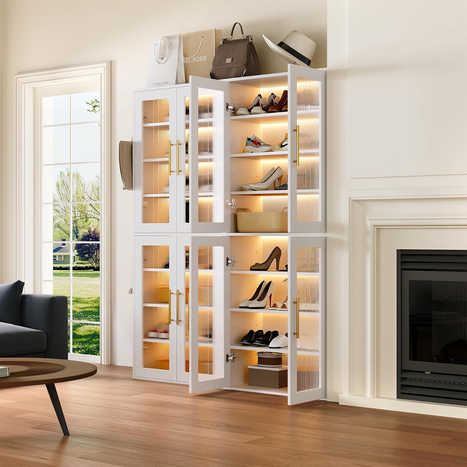 - Built-In LED Strip: Designed with built-in LED lighting and available in a variety of colors, this shoe rack not only adds an elegant touch to your space, but also makes it easier to quickly find your beloved shoes
