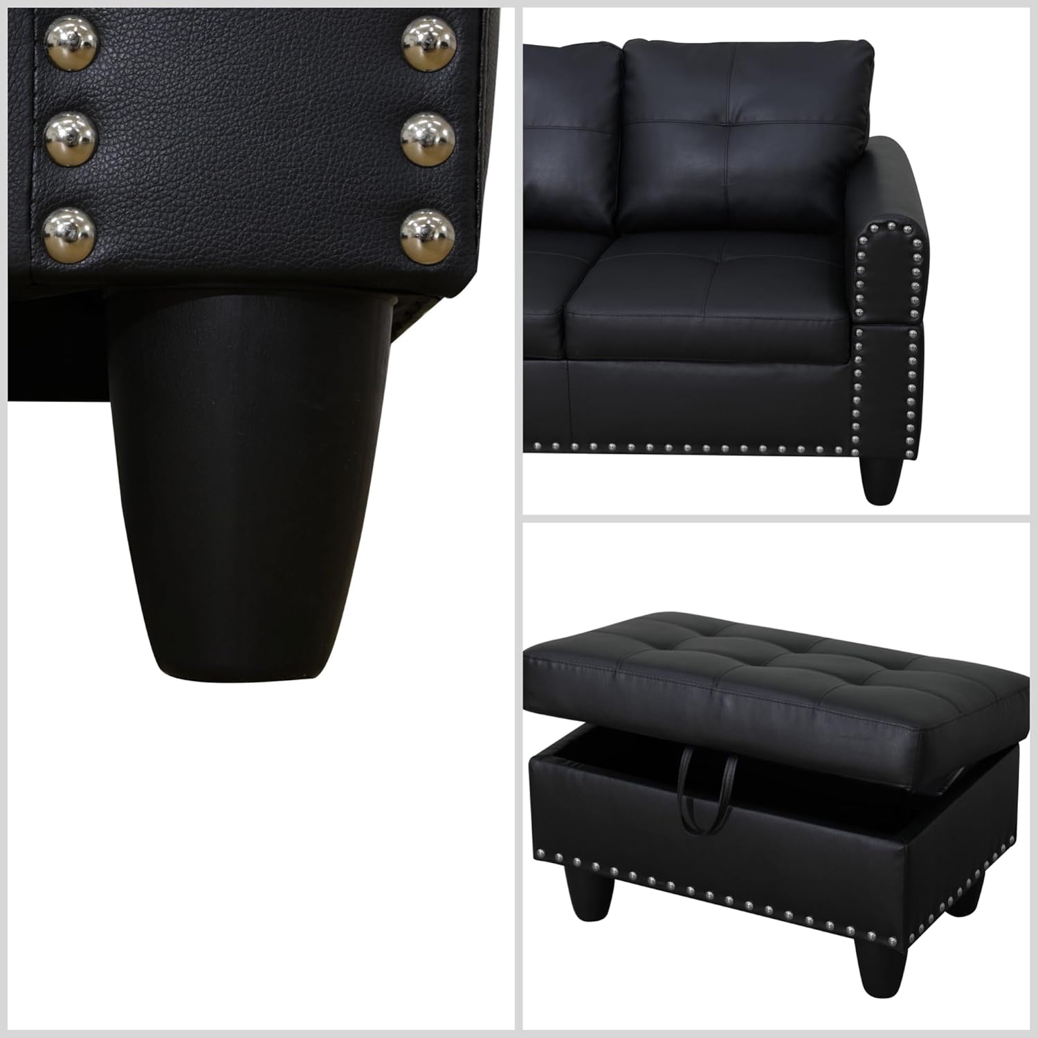 L Shaped Sectional Couches for Living Room, Modular 4 Seat Sofa with Ottoman Storage, Modern Couch with Chaise for Bedroom Apartment Furniture, Black