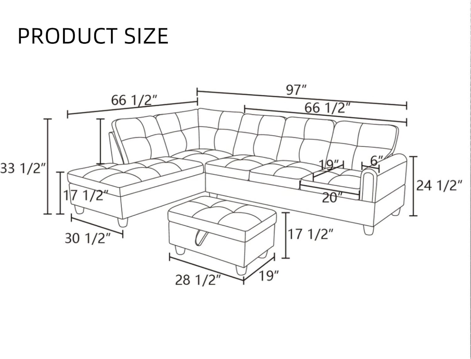 - Versatile Ottoman Placement: Featuring a movable ottoman, this L-shaped sofas for living room allows you to position it on either the left or right side, catering to the layout of your living room furniture sets