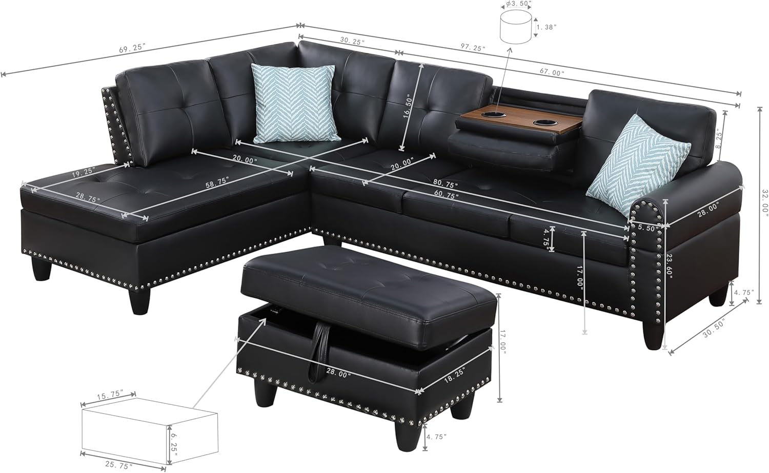 - Size : 98"+Ottoman