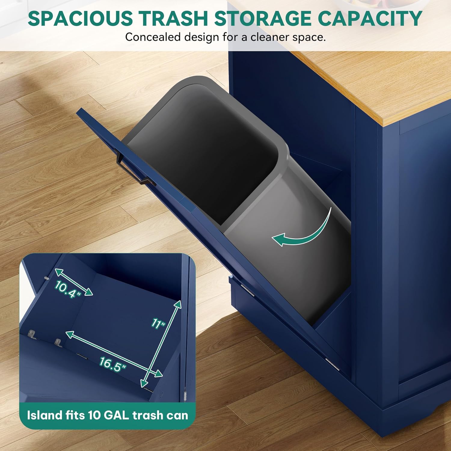 YITAHOME 50" Kitchen Island with Power Outlet & Drop Leaf, Rolling Island Cart with Trash Can Cabinet, Mobile Storage Islands with Microwave Rack, Door Storage Spice Rack, Navy Blue