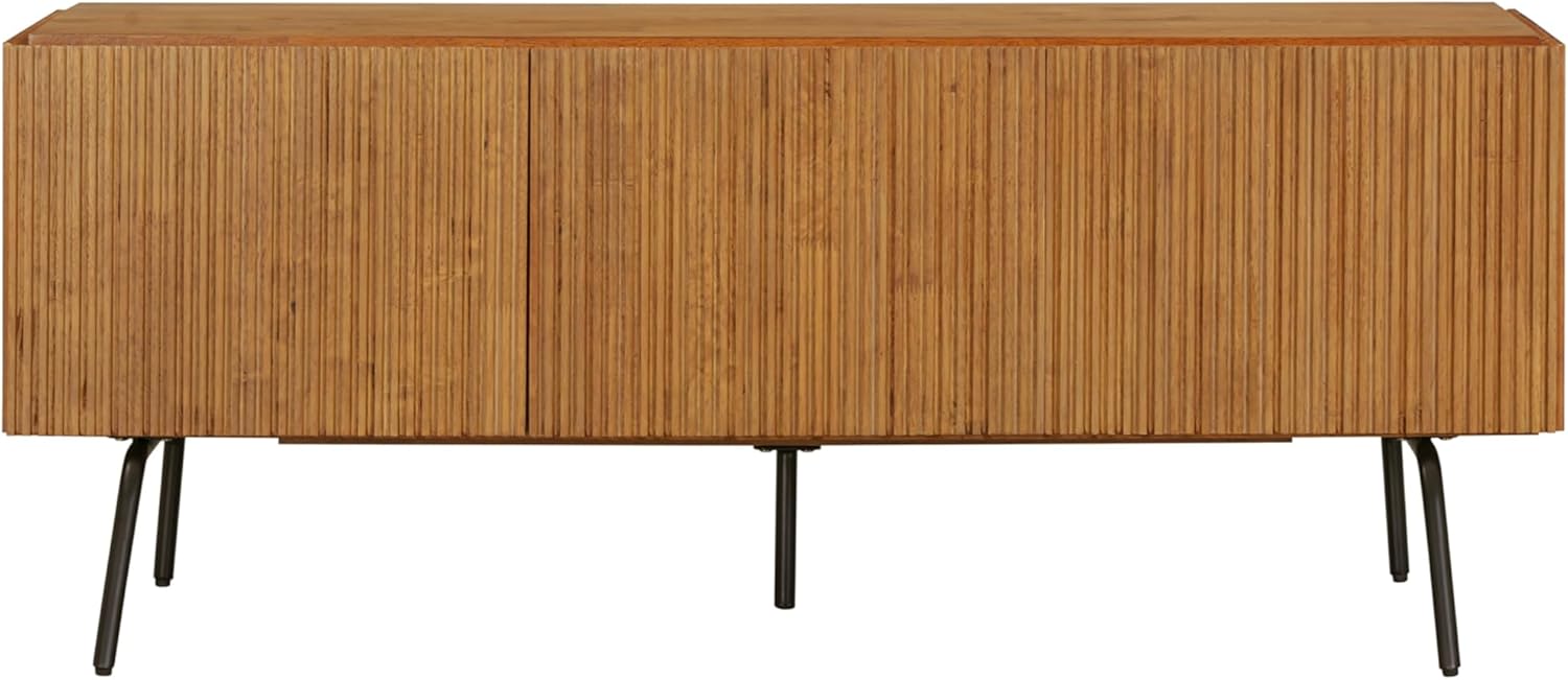 NTC Veil TV Stand with 3 Doors for TVs up to 60’’, Media Console with Vertical Groove Design and Metal Legs, Modern Entertainment Center for Living Room and Bedroom, Effortless Assembly, Teak Look