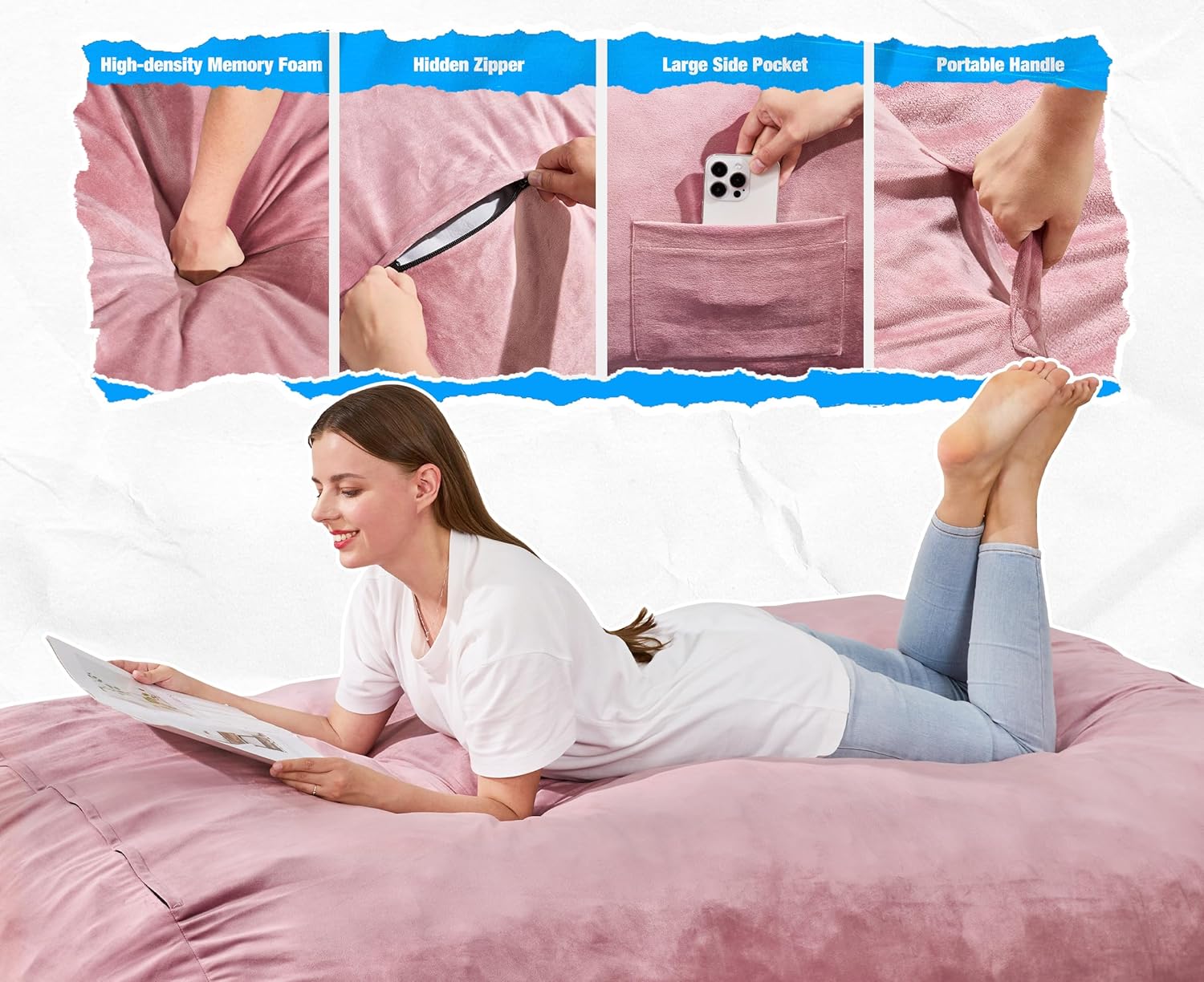 Hobestluk 6FT Bean Bag Chair Large Beanbag Lounger with Removable Cover Adult Bean Bag Chair with Portable Handle Desgin for Living Room Bedroom (Pink, 6FT)