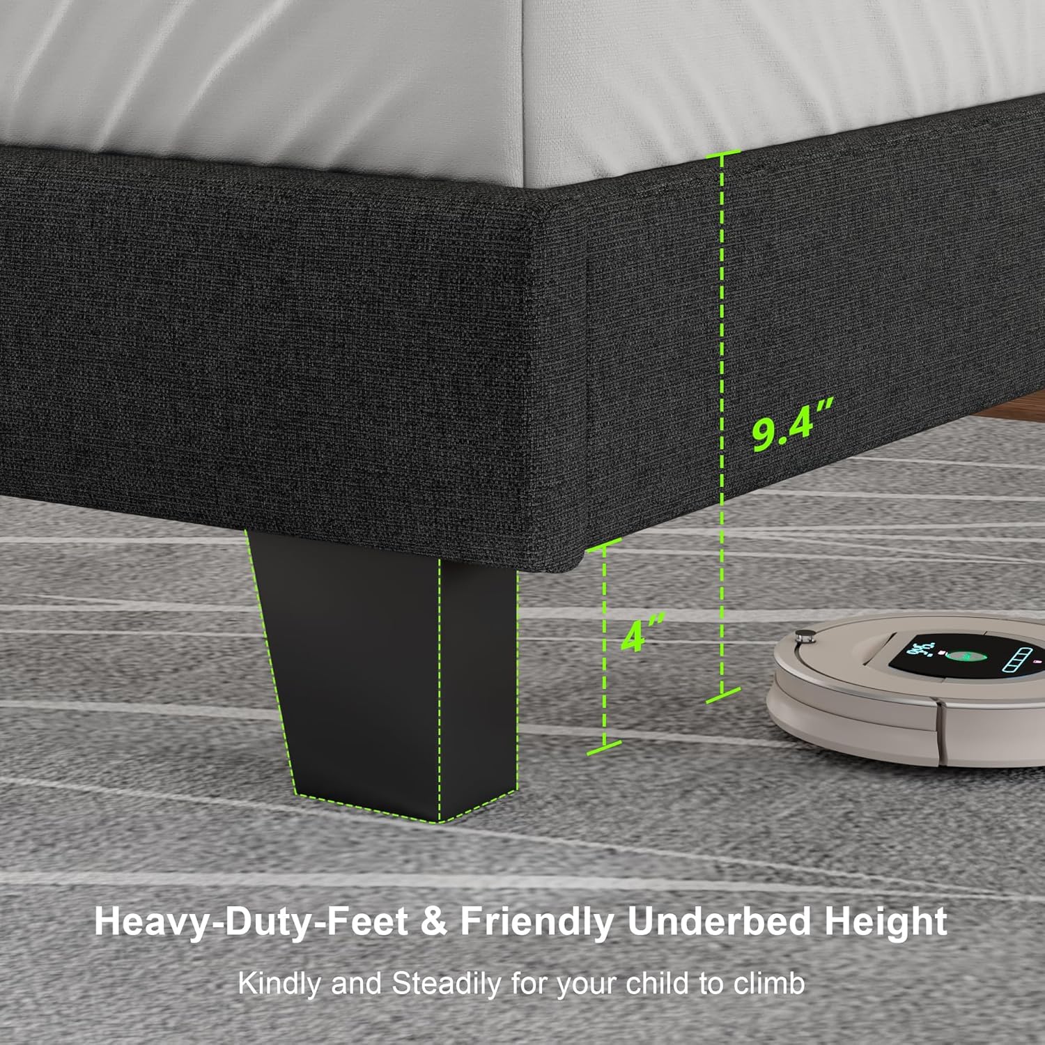 Feonase King Size Platform Bed Frame, Upholstered Bed with Button Tufted Headboard, Heavy Duty Wooden Slats & Thickened Feet, No Box Spring Needed, Noise-Free, Easy Assembly, Dark Grey