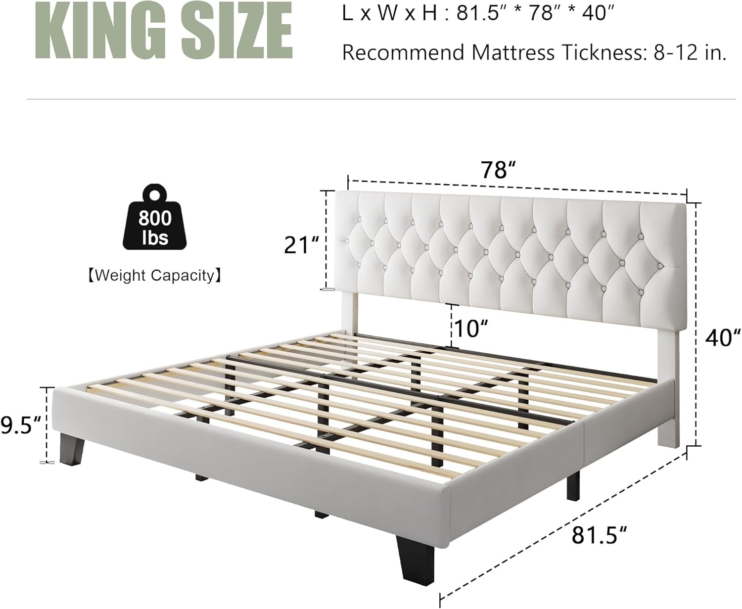 - Special Feature : Button Tufted Headboard, No Box Spring Needed, Squeak Resistant