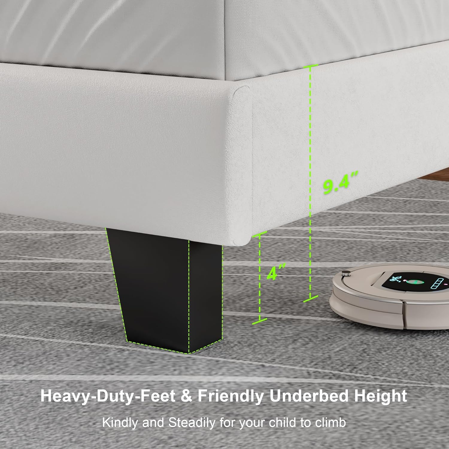 - Friendly Underbed Height: 5" under-bed height is low to the ground, kindly and steadily for your family to lie down, the solid wood slats support this bed no need for a box spring needed