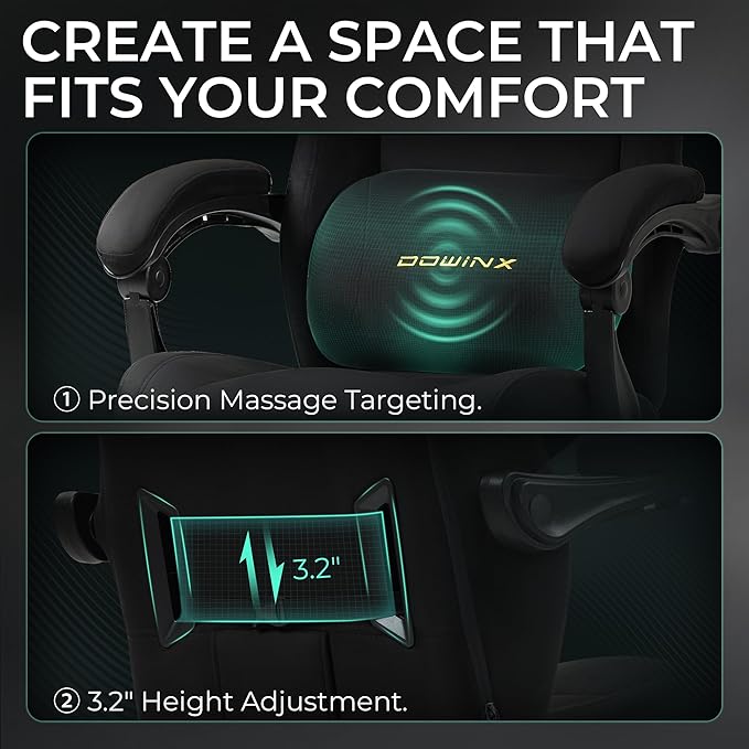 - 【Massage Gaming Chair with Spine Support】The adjustable lumbar cushion in this gamer chair delivers targeted relief and soothing massage vibrations. Its ergonomic design cradles your spine in this ergonomic gaming chair, promoting perfect posture for long hours at your desk or screen