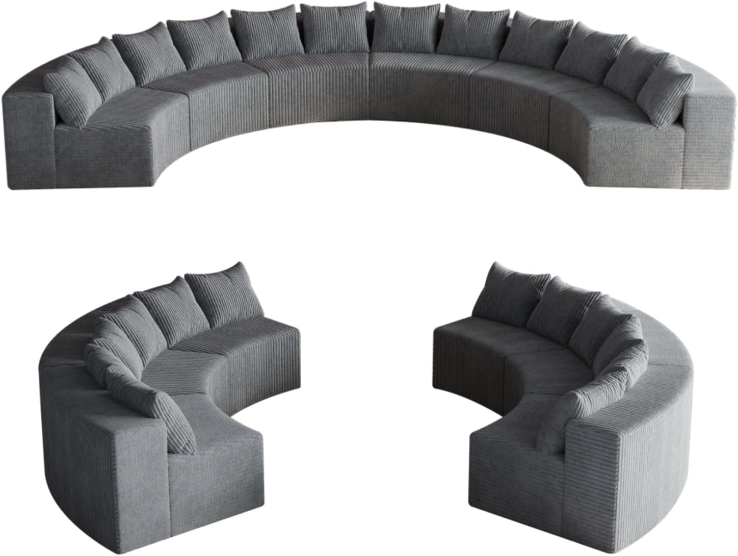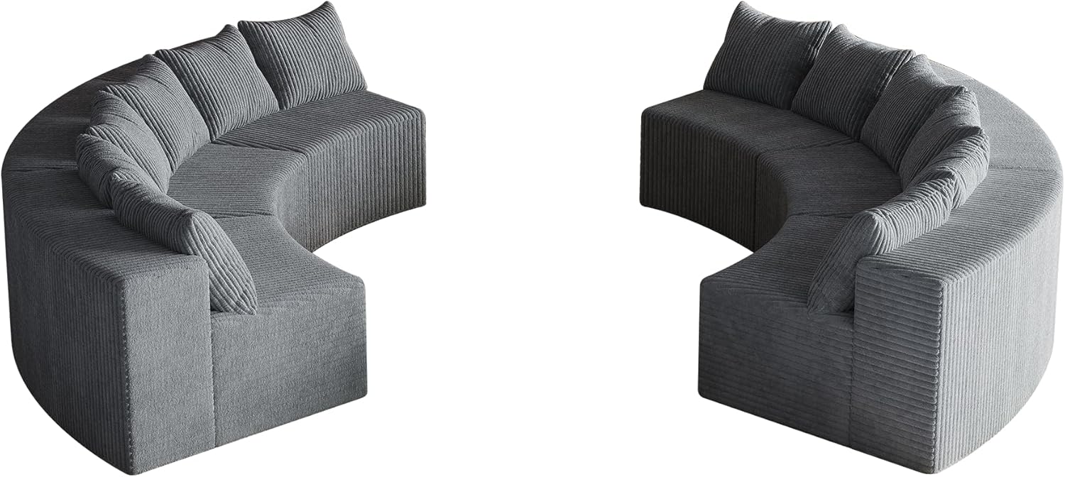 KEIKI Corduroy Curved Sectional Sofa, 6 Seater Symmetrical Modular Semi Circular Couch, Tufted Deep Seat Corner Sofa for Living Room, Lobby, Gray