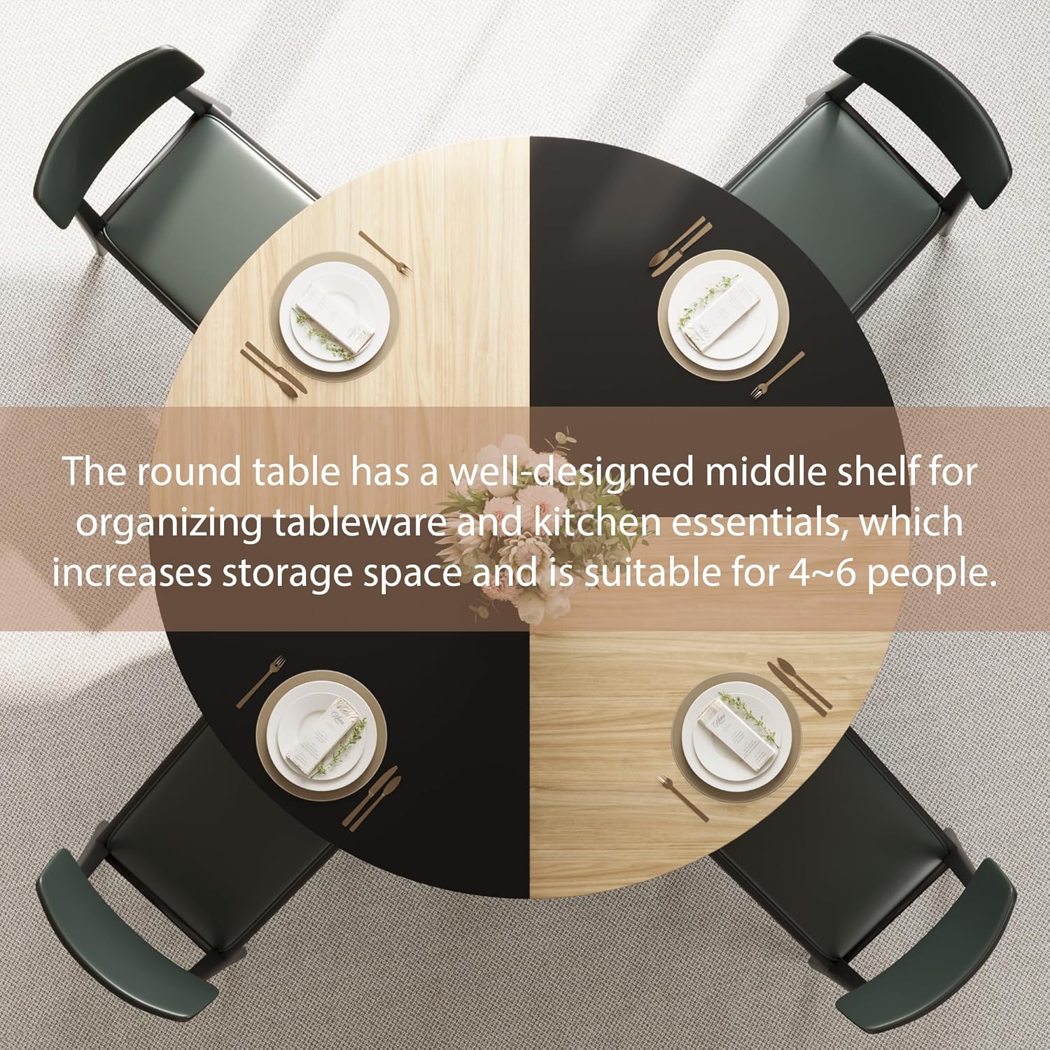 GarveeHome Round Dining Table for 4-6, 47.2" Farmhouse Kitchen Table with Storage, Circle Dinner Tables for Kitchen, Dining Room, Living Room, Meeting Room, Apartment, Natural and Black