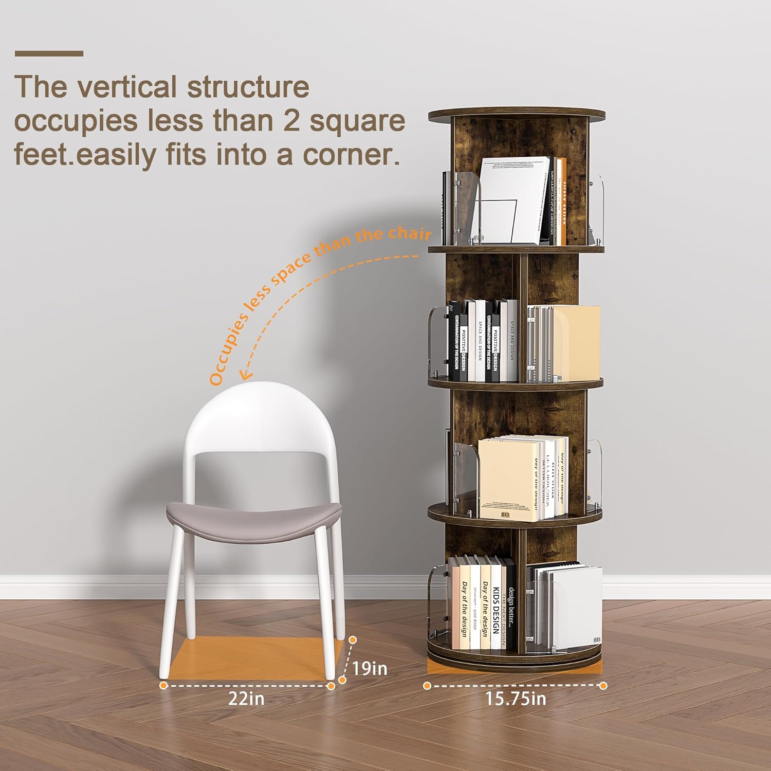- 【Large Capacity】 4-tier open revolving bookshelf with 16 small compartments, used for storing books, decorations, daily necessities, children's toys, etc., which combines practicality and storage. The compartments are of appropriate size, very suitable for storing books of average size, with a maximum capacity of 100 books!