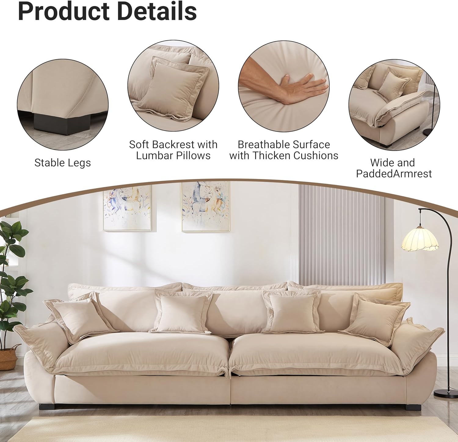 126 Inch Sailing Design Modular Sectional Cloud Sofa with Storage, Modern Deep Seat Couch w/Throw Pillows & Removable Backrest for Living Room Bedroom Apartment,Light Khaki