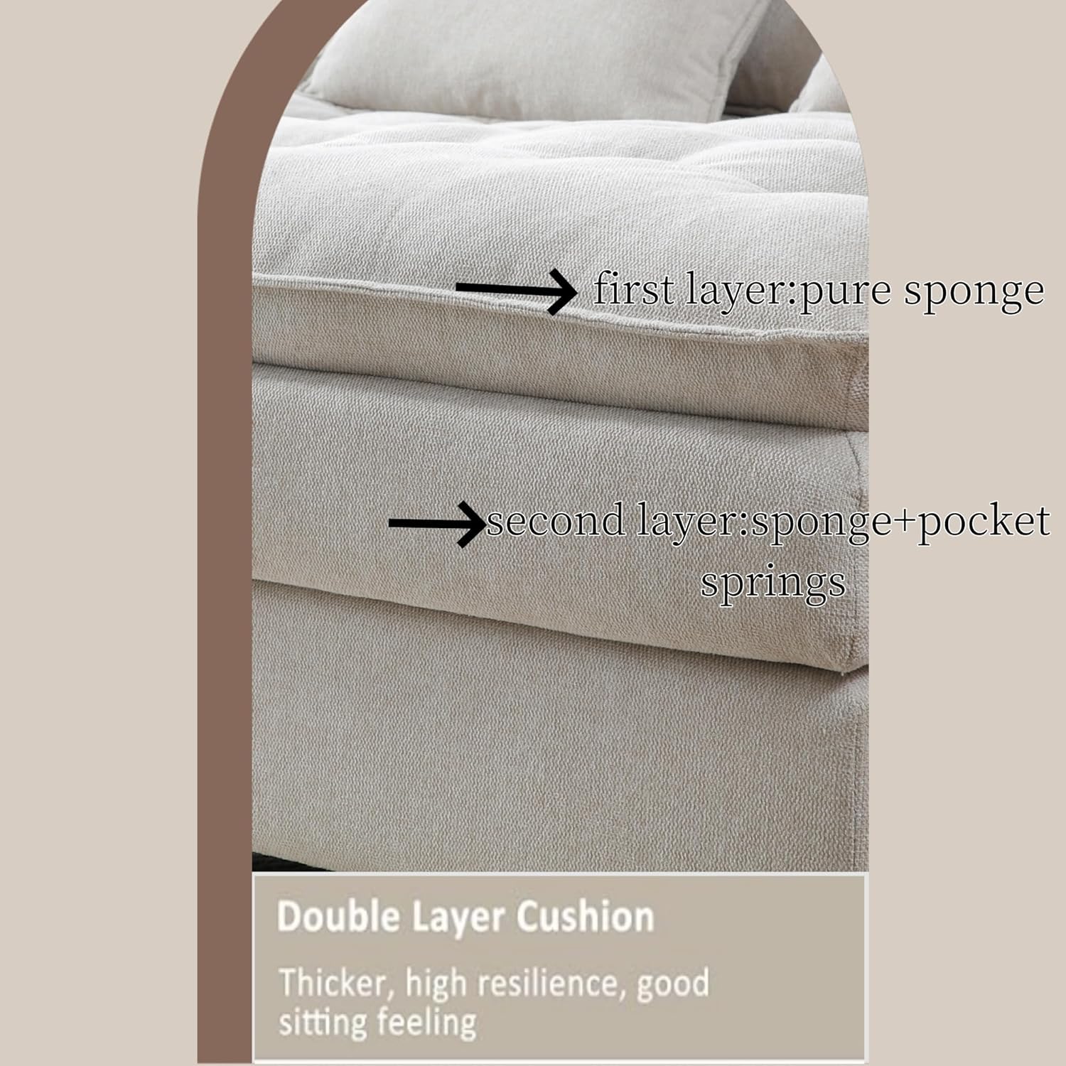 - [Cozy Couch with Premium Upholstery] This living room couch is covered in soft, long-lasting linen fabric, complemented by armrest pillows for head support and four lumbar pillows for lower back comfort. Easily adjust your posture to reduce fatigue, making it a cozy hub for family time.