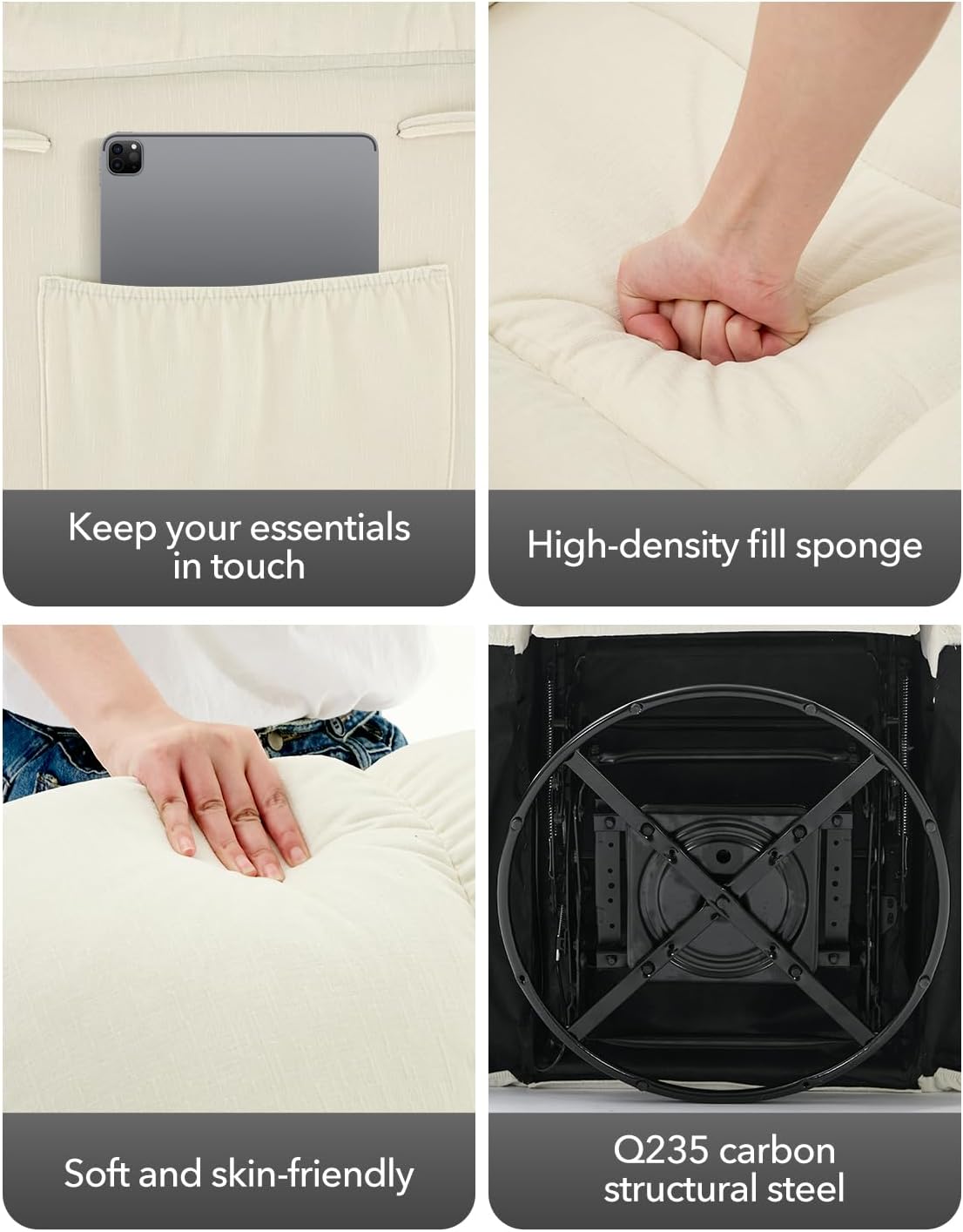 - 【Q235 Carbon Structural Steel Base】The base frame of the rocking chair is made of sturdy carbon steel material that allows for a load capacity of up to 300 pounds, thus ensuring durability and safety.