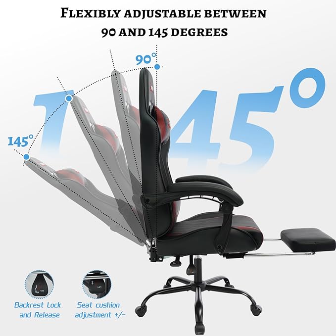 - 【Multi-Function Reclining Backrest with Footrest】Relax at any angle. Enjoy 145° recline comfort. Easily extend the retractable footrest. Whether for intense gaming, productive work, or cozy breaks, it handles it all with ease.