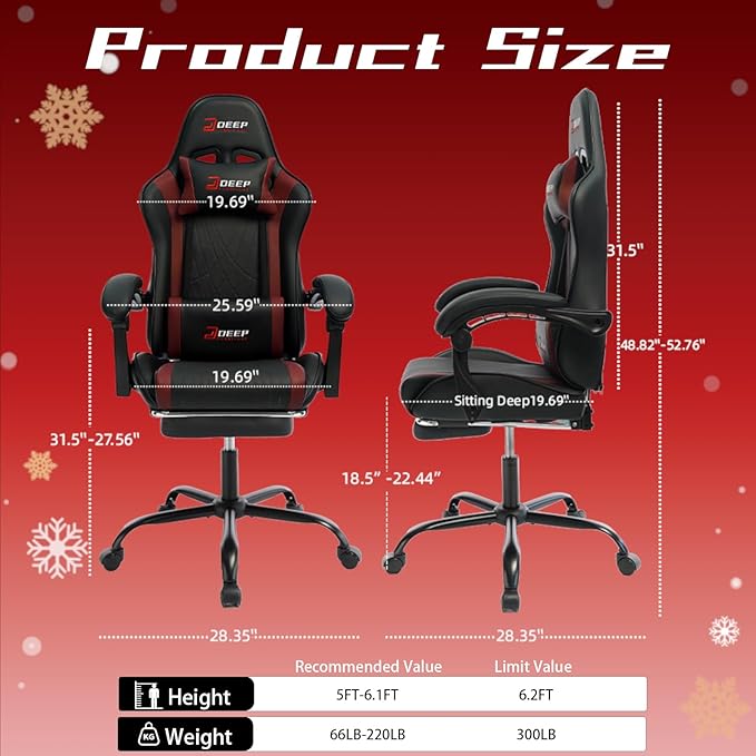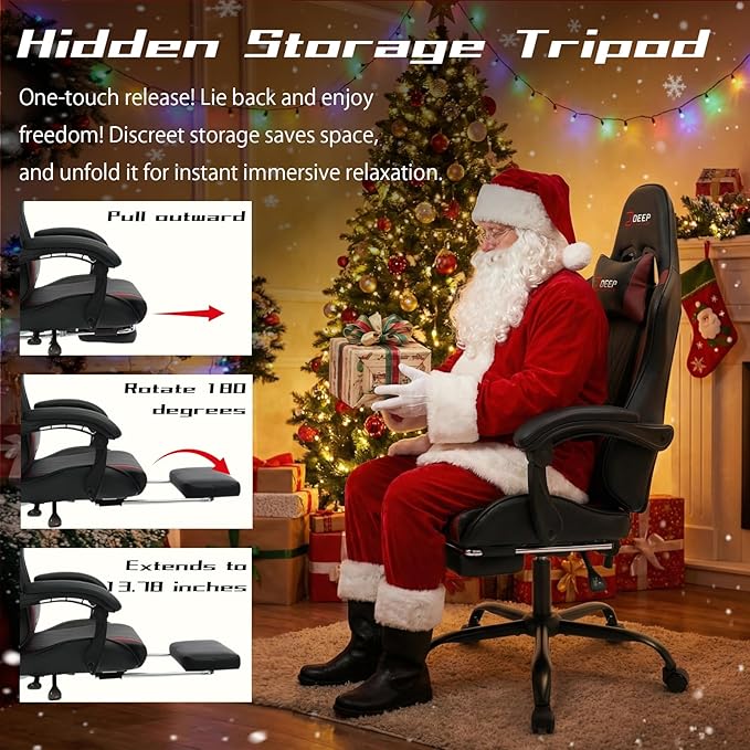 - 【Multi-Function Reclining Backrest with Footrest】Relax at any angle. Enjoy 145° recline comfort. Easily extend the retractable footrest. Whether for intense gaming, productive work, or cozy breaks, it handles it all with ease.
