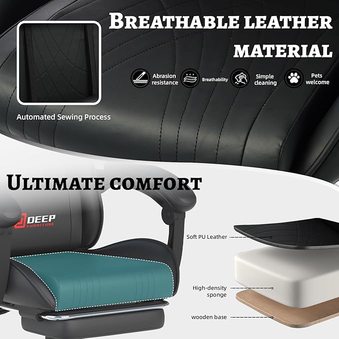 - 【Multi-Function Reclining Backrest with Footrest】Relax at any angle. Enjoy 145° recline comfort. Easily extend the retractable footrest. Whether for intense gaming, productive work, or cozy breaks, it handles it all with ease.