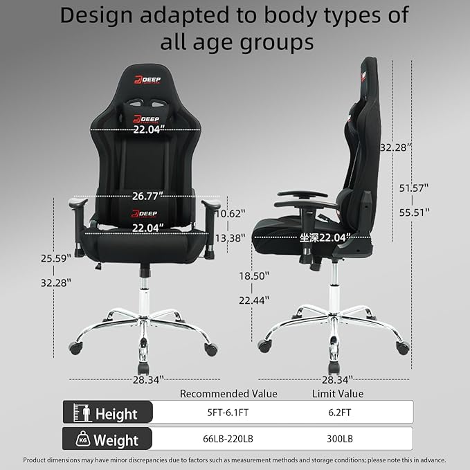 Ergonomic Fabric Gaming Chair with Footrest and Lumbar Support Racing Office Chair Adult-Specific Computer Gaming Chair Wrinkle-Resistant.(1005-Black)
