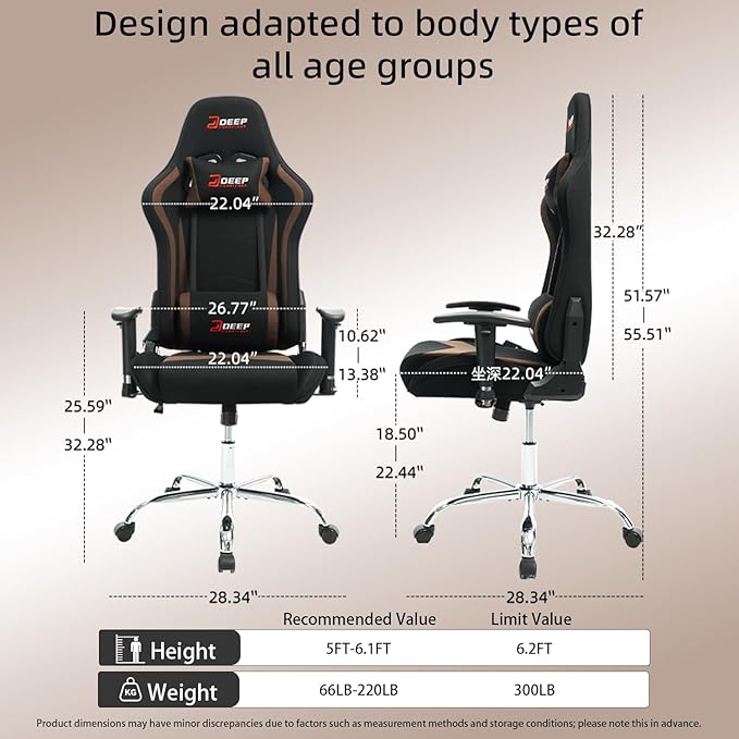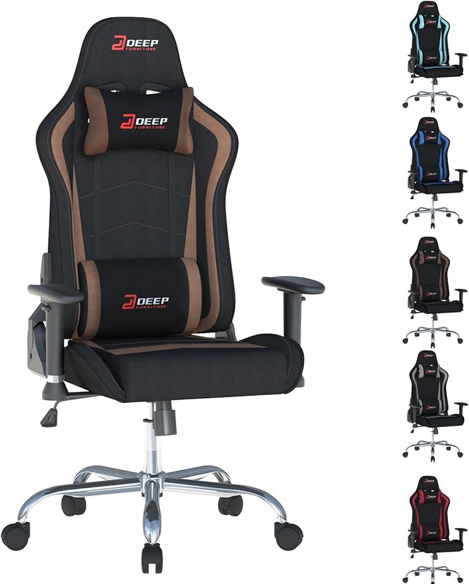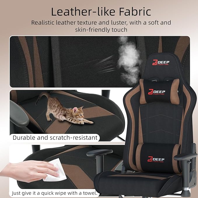 Ergonomic Fabric Gaming Chair with Footrest and Lumbar Support Racing Office Chair Adult-Specific Computer Gaming Chair Wrinkle-Resistant.(1005-Brown)