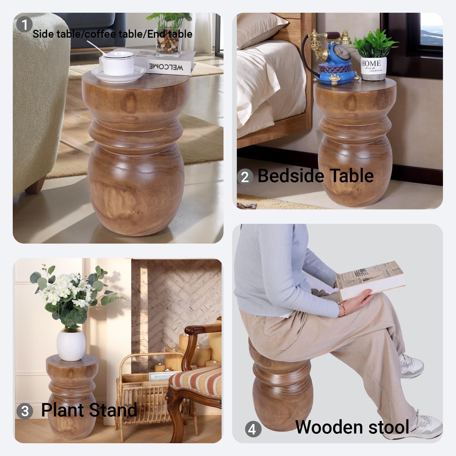 Handcrafted Tree Stump Accent Table 15.75" H Small Solid Paulownia Wood Stool/Side Table, Unique Rustic Farmhouse Decor, Ideal for Patio, Balcony, Bedroom